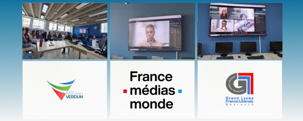 À l’occasion de la Semaine de la presse et des médias à l’École, France Médias Monde s’est mobilisé pour proposer plusieurs interventions en ligne auprès des élèves de deux établissements du Réseau mlfmonde au Liban : le Grand Lycée Franco-Libanais et le Lycée Verdun à Beyrouth.