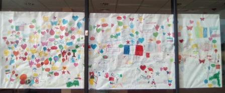 Les enfants ont également été invités à participer à un atelier d’écriture « sur les murs » semi-dirigé. Au cours de cette activité, les élèves ont pu donner libre cours à leur imagination et, guidés par leurs professeurs, ont produit une fresque sur papier ainsi que des créations libres à la craie sur les murs dans l’enceinte de l’établissement.