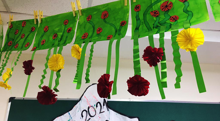 Partout dans le monde, les élèves et les équipes connaissent les contraintes liées à la pandémie. Celles et ceux qui ont eu la chance de pouvoir étendre le fil des productions dans l’école, en mars, ont partagé leur vision des « Jardins suspendus », thème de cette édition printanière. Une explosion de couleurs, acryliques, à l’eau ou végétales !