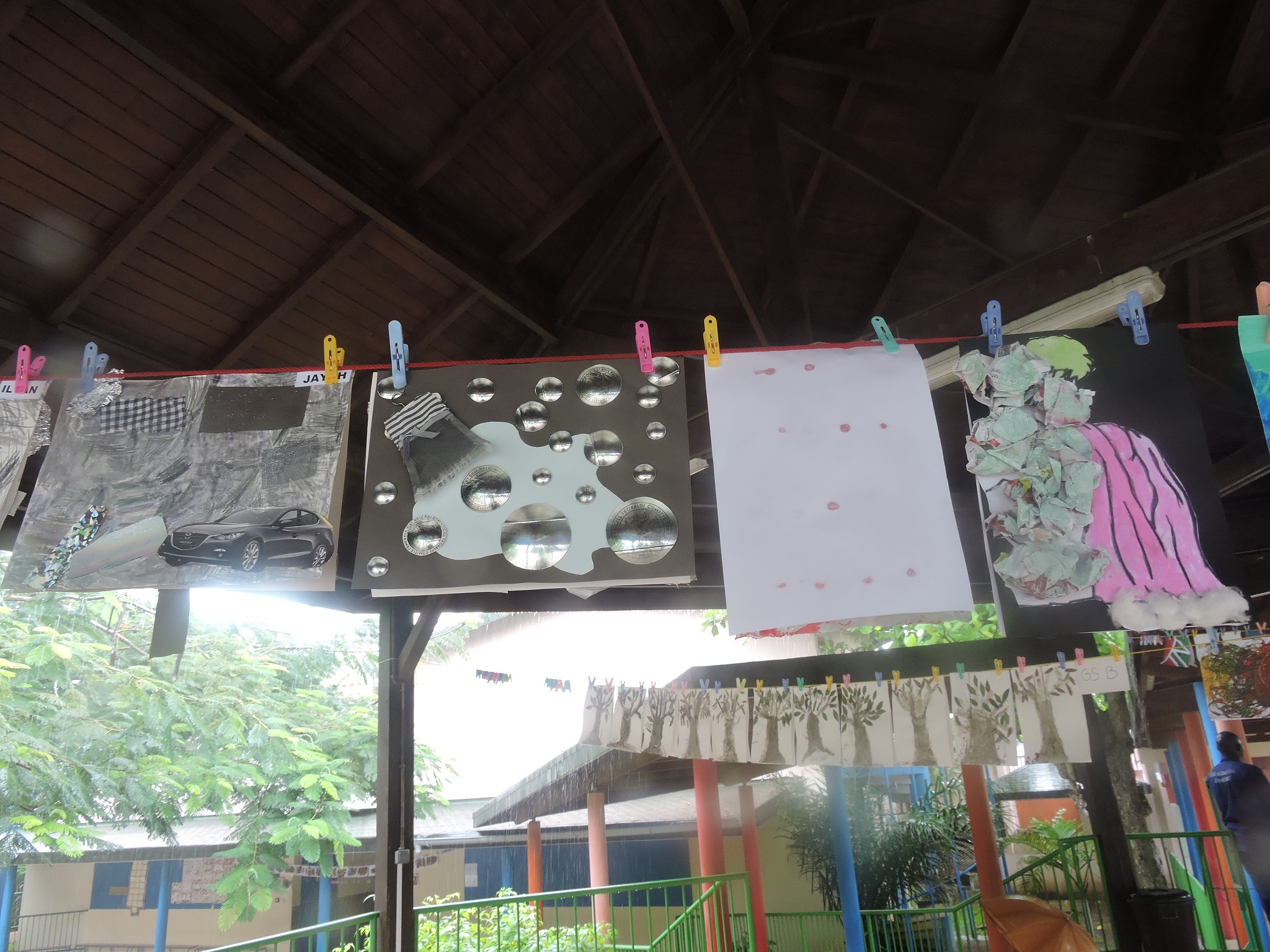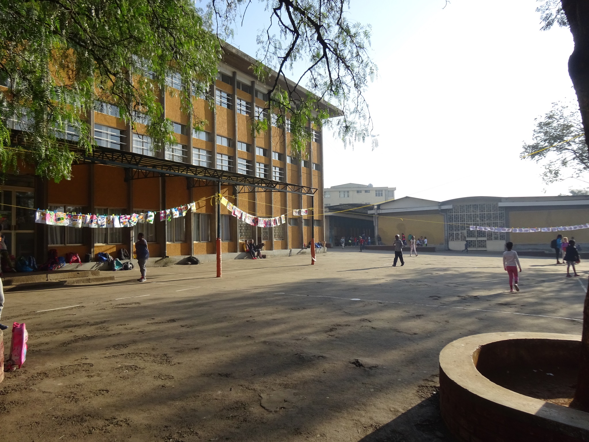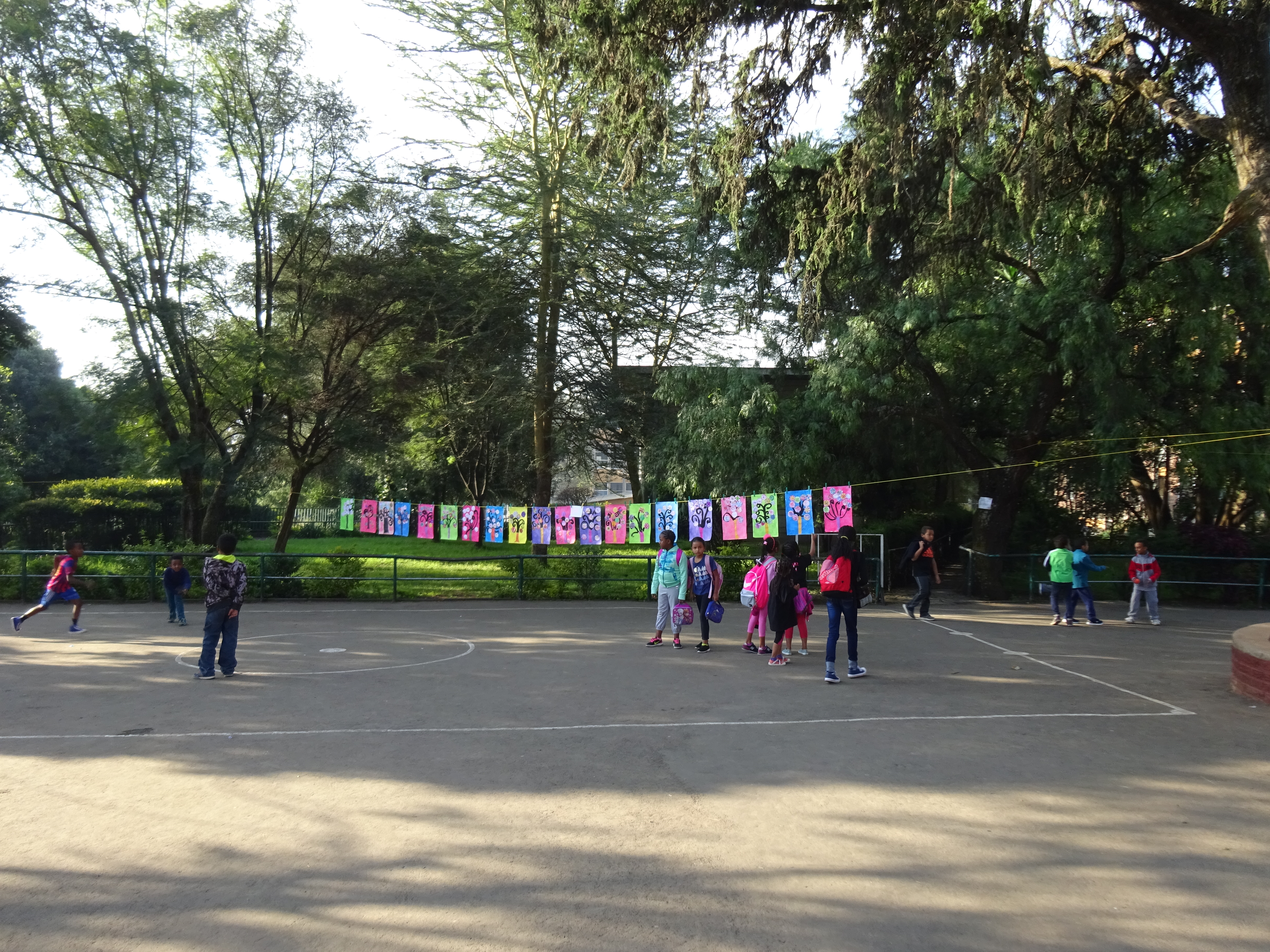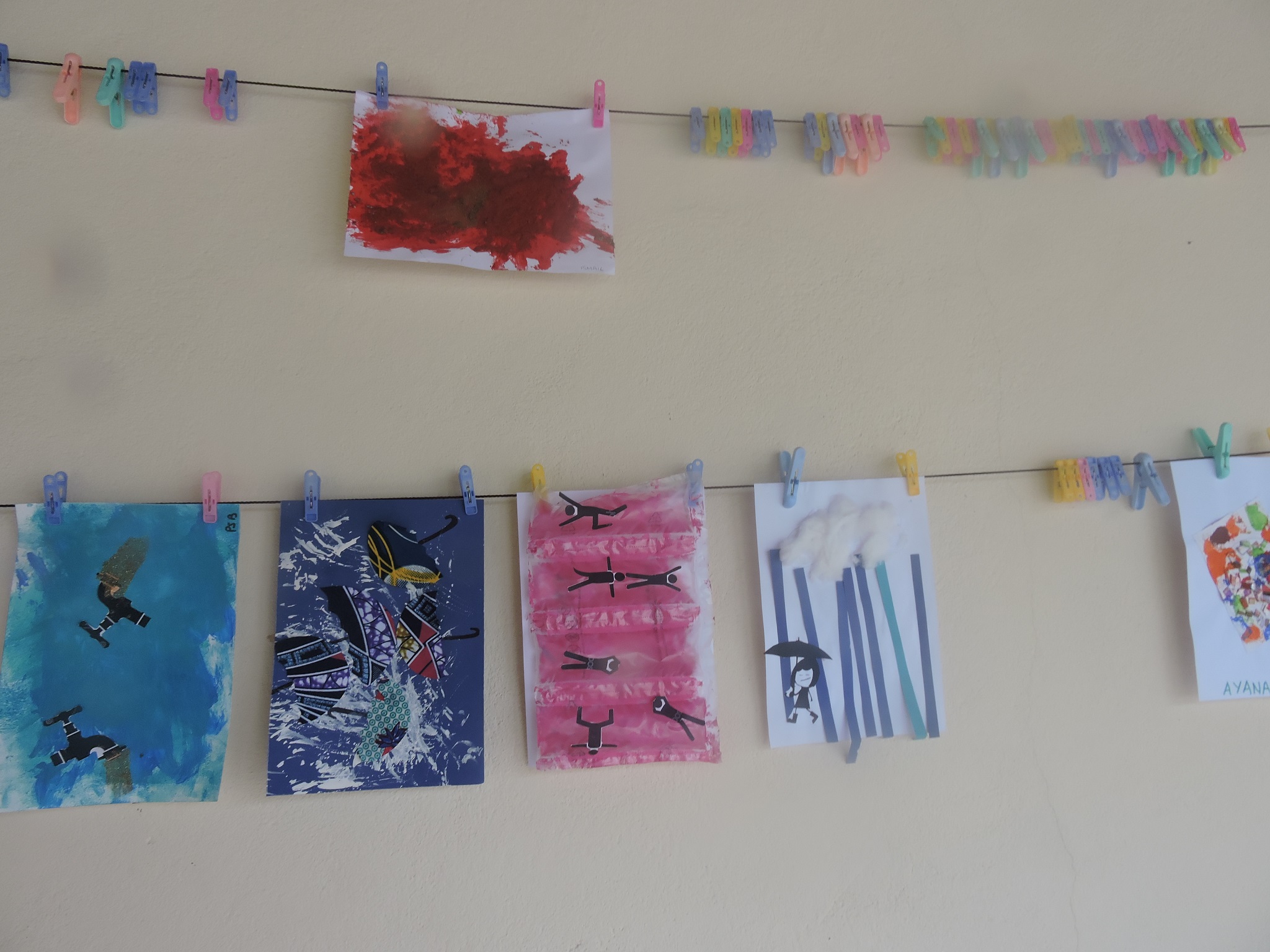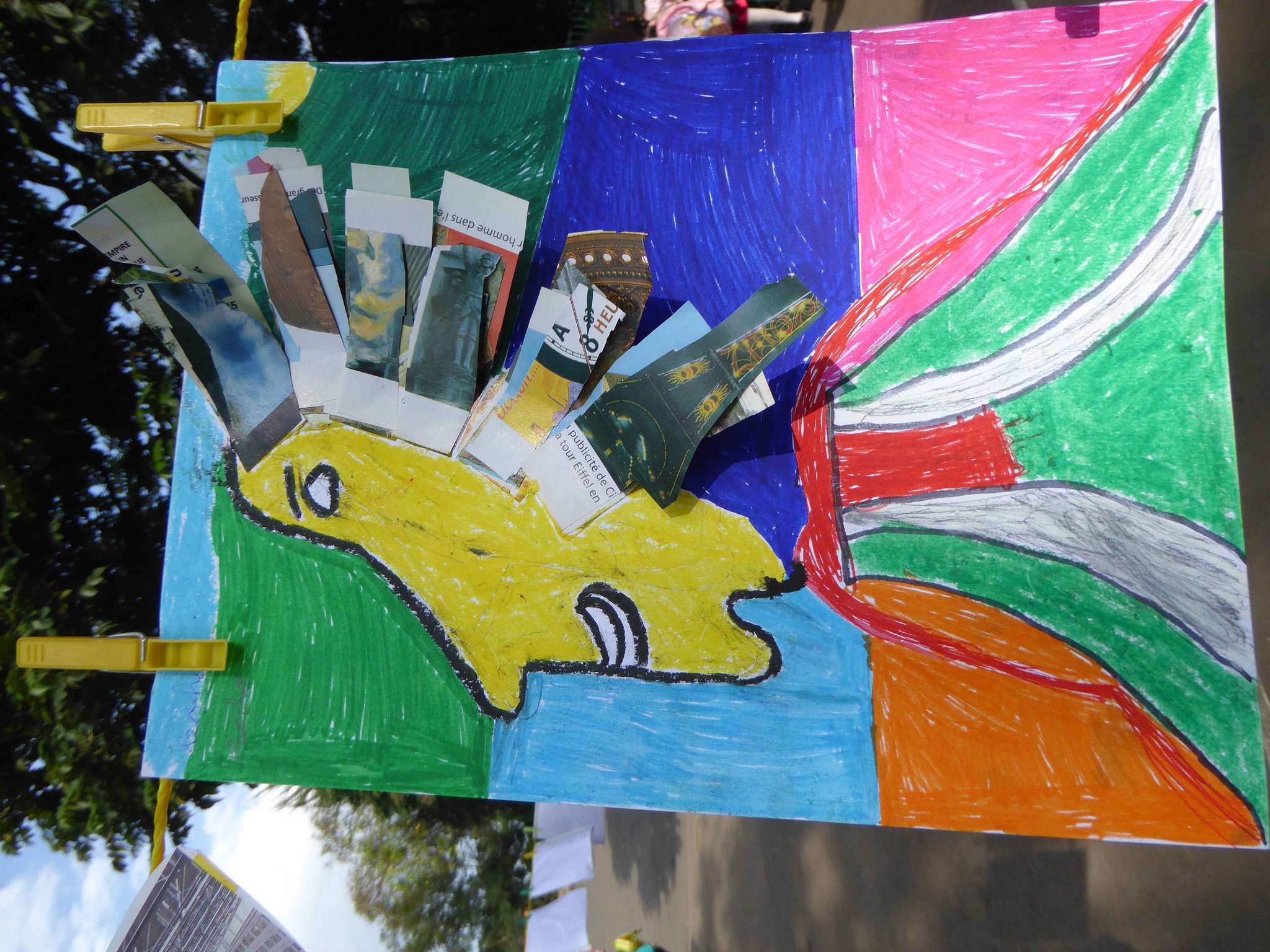 Au lycée Guébré Mariam, à Addis Abeba, de la maternelle au cycle 3, pas moins de 600 élèves ont participé à cette installation éphémère. Le thème de cette édition était « matière(s) à penser » . Ce sont 600 œuvres étendues sur le fil à linge accroché pour l’occasion dans les deux cours de l’établissement. Grâce à cette exposition géante, nous savons enfin « quelles matières utiliser pour représenter la pensée ? » et surtout ce qu’il y a « dans le cerveau du chat botté » !