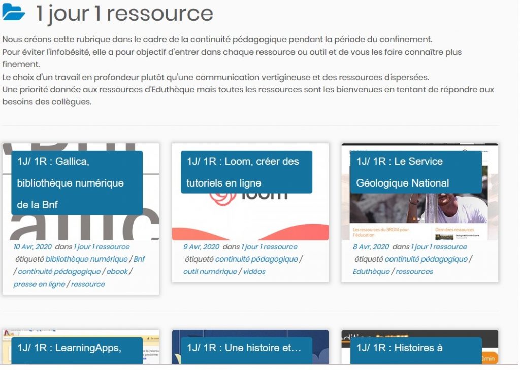 En cette période d’infobésité, les ressources sont identifiées, partagées, relayées sur les réseaux sociaux et force est de constater que chacun fait sa sélection avec ses outils de prédilection quitte à faire le même travail de veille. Les profsdocs du réseau ont donc eu l’idée d’approfondir les ressources, les apprivoiser, les détailler puis les décrire dans la rubrique 1 jour 1 ressource proposée sur le site profsdocs du reseau.